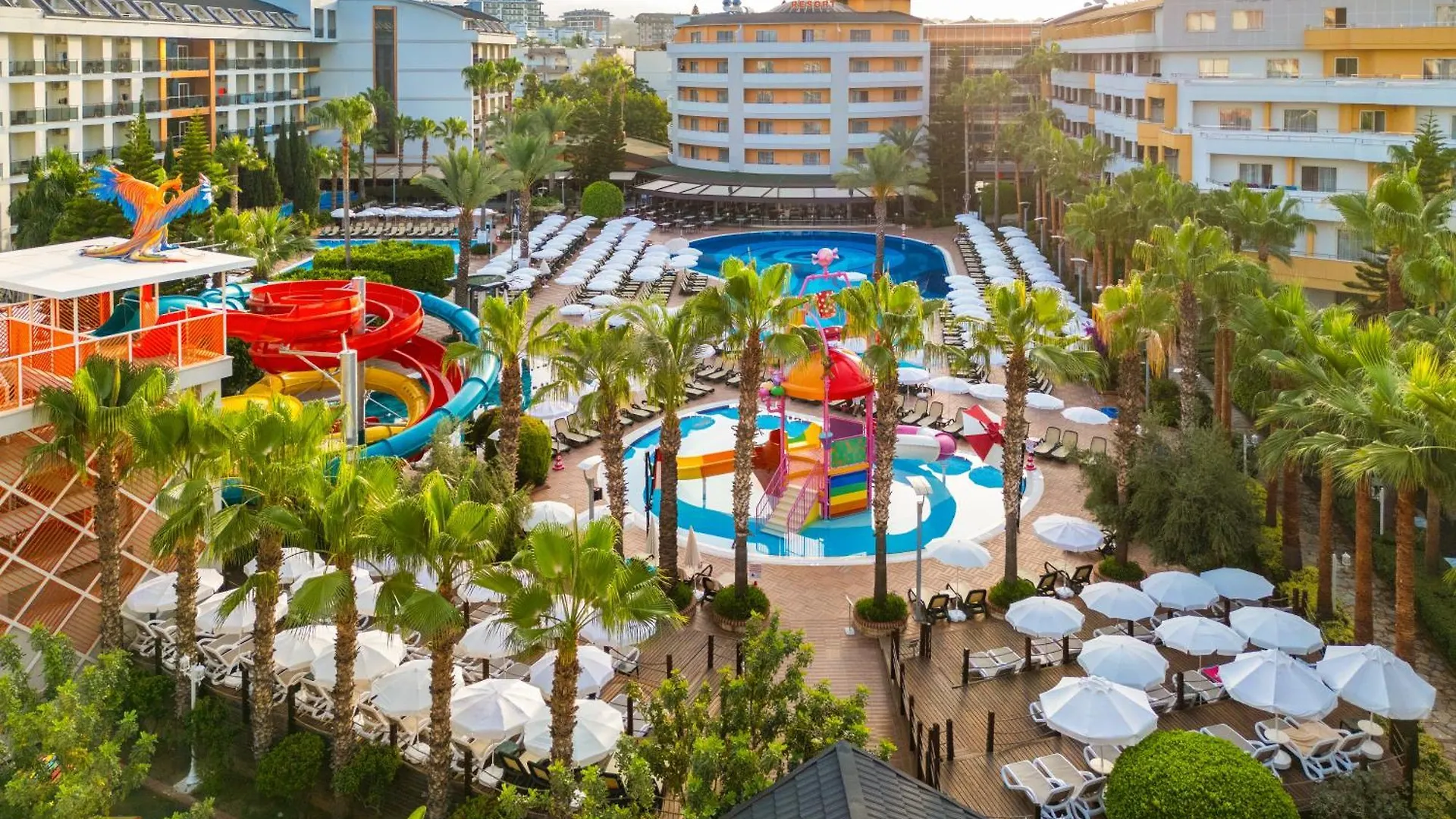 - Pools: 2 outdoor (640 m² & 340 m²), children’s pool 100 m², slides pool 80 m², indoor pool 90 m²